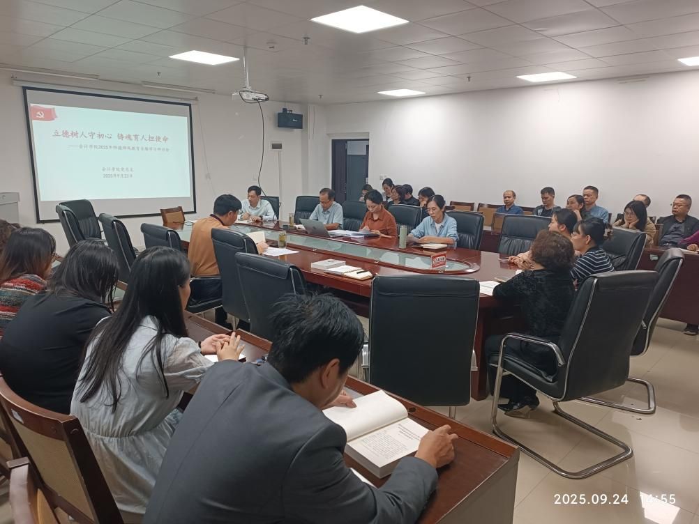 为深入贯彻落实新时代教师队伍建设要求,全面加强师德师风建设,9月24日下午3时,SUNBET申博体育全体教职工在会议室召开师德师风教育主题学习研讨会。此次会议旨在引导教师坚守育人初心,强化责任担当,为公司公司产品高质量发展注入精神动力。会议由党总支书记镇咸辉主持。