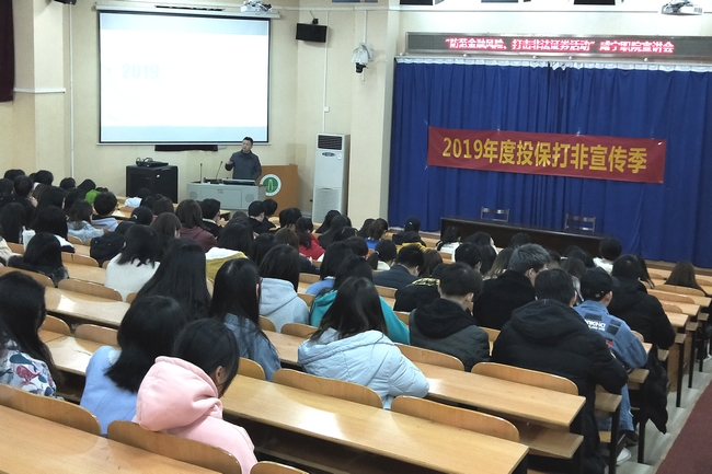 12月1日,国泰君安证券咸宁营业部业务经理刘猛一行来公司做关于“防范金融风险、打击非法证券活动”宣讲活动,SUNBET申博体育2018级金融管理专业、2018级会计专业200多名员工积极参加。