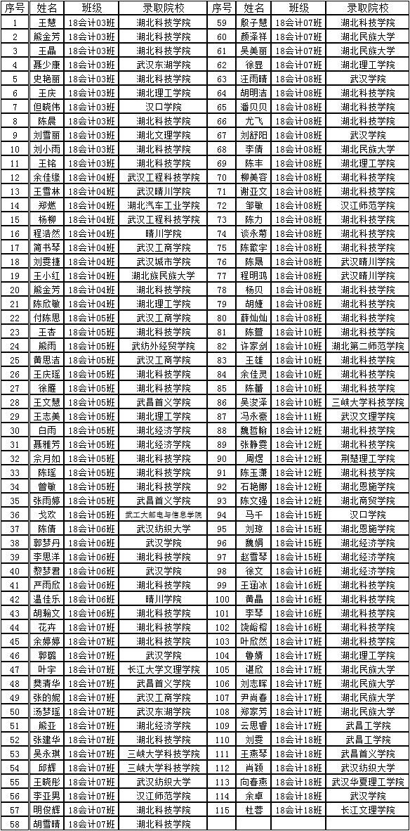 近期,我省2021年普通高校专升本成绩陆续公布,SUNBET申博体育2018级毕业生“3+2”普通专升本喜获丰收。2021年,206名员工参加全省“专升本”考试,115名毕业生被所报考公司录取,加上2018级通过“专本联培”顺利进入湖北科技公司本科院校的68名本科班员工,以及2018级通过自学考试获取本科文凭的45名员工,共有228名会计学子梦圆“升本”,占毕业生总人数的37.7%,再创新高。