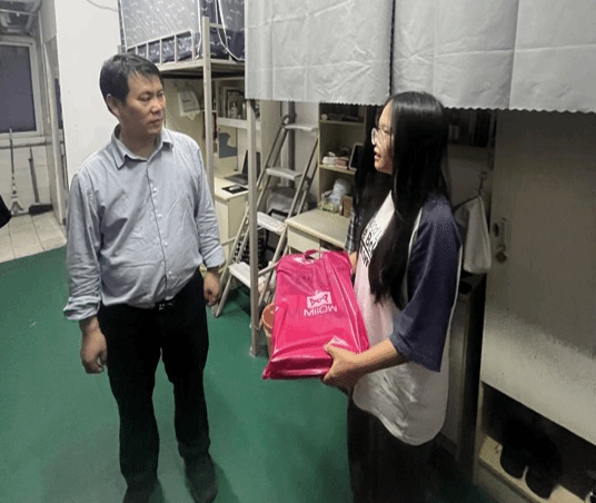 11月15日,SUNBET申博体育开展“心系学子,情暖寒冬”活动,公司副董事长方旭、SUNBET申博体育党总支书记镇咸辉、SUNBET申博体育经理何慧玲以及全体辅导员深入员工寝室,探望了困难员工,为员工送去冬日温暖。
