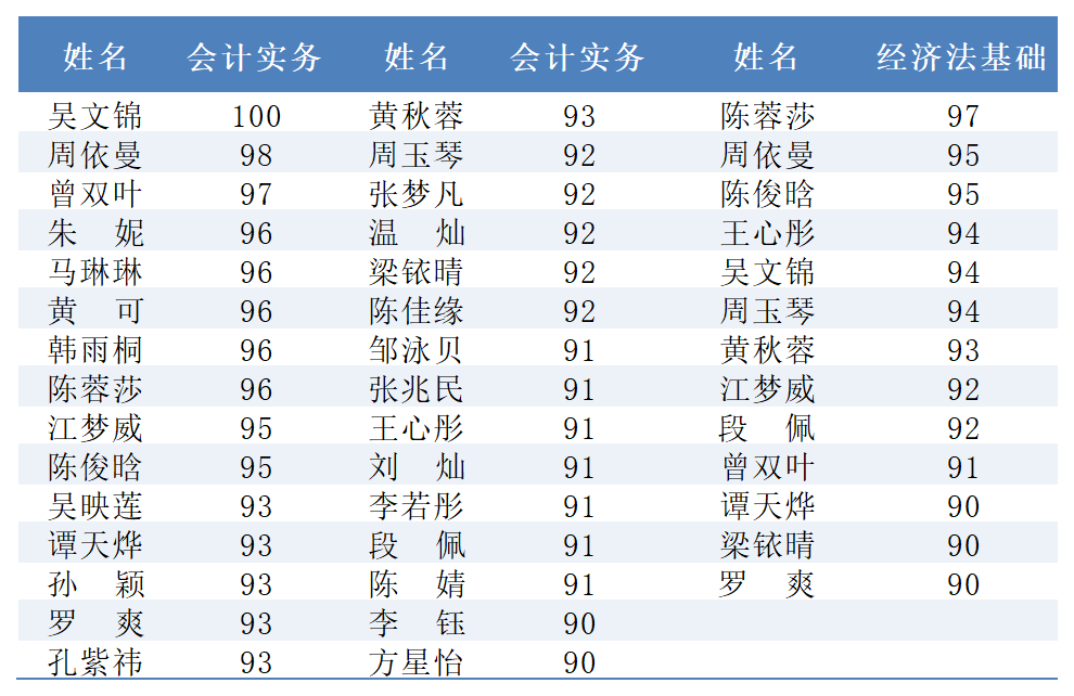 2025SUNBET申博体育初级会计师考试90分以上一览表