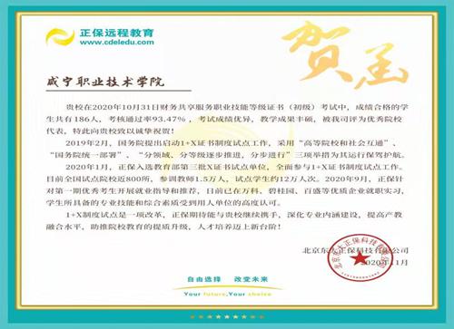 SUNBET体育会计专业群积极探索教学改革,实施岗证课赛融通,开展“分层对证”教学。双证书获取率均达到98%以上,近五年,初级会计专业技术资格证书获取率分别高达83.3%、87.8%、92.4%、84.2%和65.8%,居全省乃至全国高职之冠。先后有3位同学荣登全国初级会计资格考试“金榜”,14位同学跃入湖北省“银榜”。2020年在 “1+X”财务共享职业技能等级证书考试中,会计专业群学子通过率高达94%,在整个湖北省名列前茅。