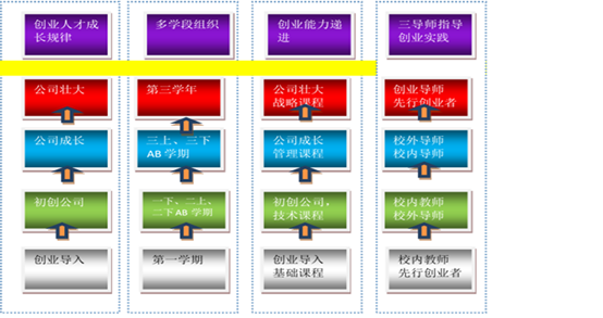 采用“学创一体、三导师”人才培养模式。以创新创业实践为主线,政、行、校、企联合,联合咸宁市政府、咸宁市工商业联合会、咸宁众创空间、咸宁及武汉中小企业等咸宁资源,开展创业创新项目的策划、校内创业孵化基地孵化、成立初创企业、初创企业经营与管理等活动,员工边创边学、边学边创、导师与员工同学同创。在学创过程中,针对不同的学习及创业任务,将员工学创过程分为多个学段,由校内通识创业导师、校内创业专业导师和校外创业导师三导师共同培养,培育创新创业型中小企业创业与经营管理人才。